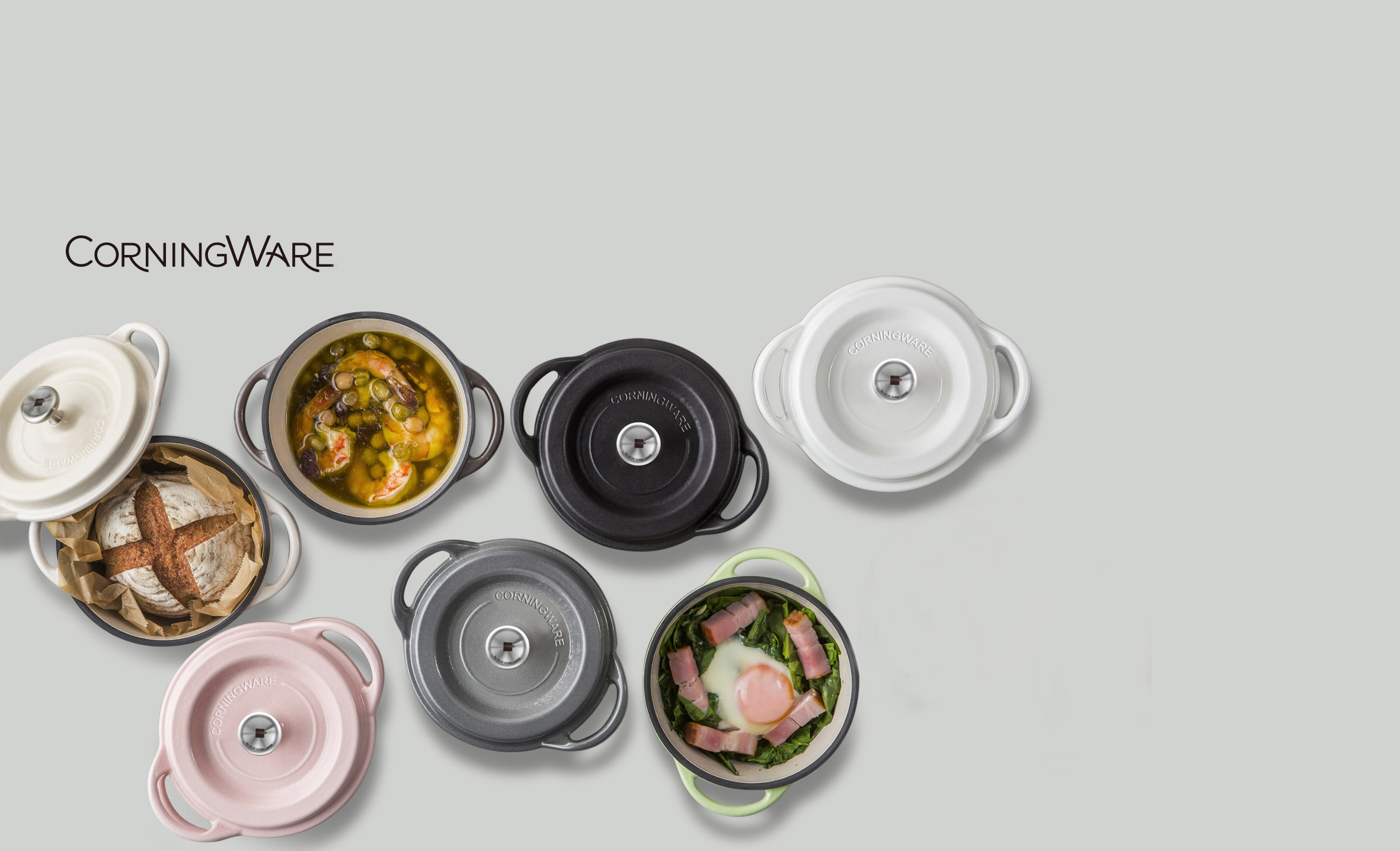 Corningware铸铁锅拥有多种颜色选择,淡雅清新的珠光色泽,不含有重金属铅或镉。从时尚外观到使用感受,都带来美好厨房烹饪体验。