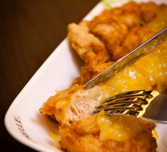 这道具有创新精神的橙花鸡算是粤菜中的“小清新”菜肴了,将鸡肉和橙子这两种看起来完全不搭的食材搭配在一起,口味清淡又带有淡淡果香。