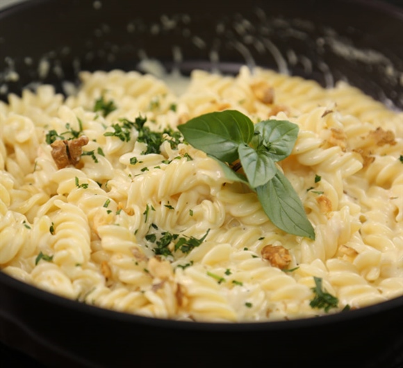 把切碎的核桃仁和欧芹撒到意面上即可。