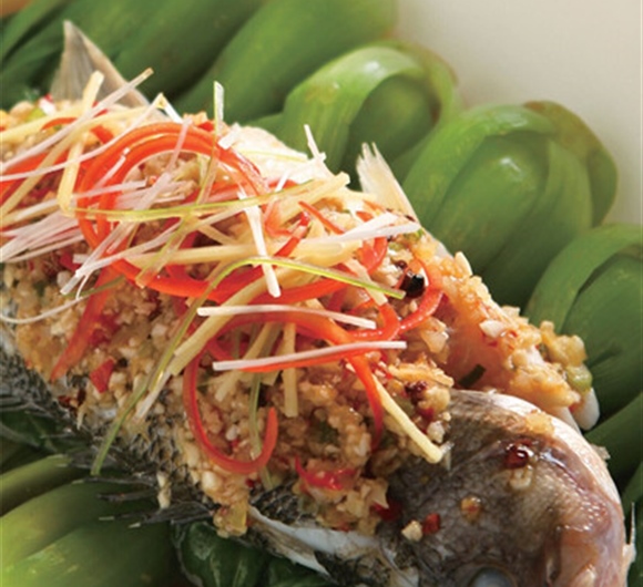 2 炒汁: 用油炸香花椒、辣椒、葱、姜、蒜,然后倒入生抽和老抽,烧开关火。倒入一些料酒或花雕,然后浇到铺好的鱼上面,再在鱼上撒一些葱、姜丝和胡椒粉放入微波炉,高火10分钟。10分钟后拿出来翻个面,让鱼肉充分入味,再放进去高火5 分钟便可。