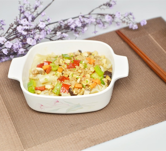 3.盘子里刷少许油将面条分散摆进去,面条表面也刷少许油,盖保鲜膜醒制30分钟