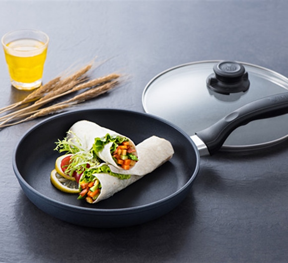 4.加入生菜、烫熟的芦笋段、芝士条、彩椒条、熟培根条、黄瓜条卷起来即可。