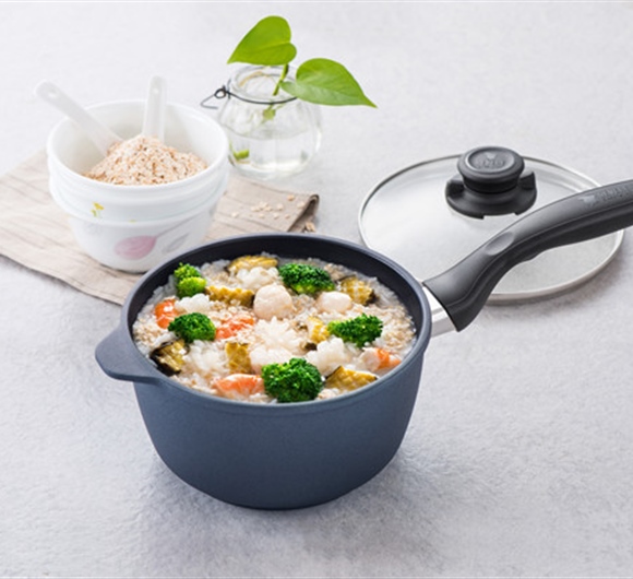 4.将腌制过的海鲜和燕麦,西兰花下入锅中,小火再熬煮10分钟,调味即可关火。
