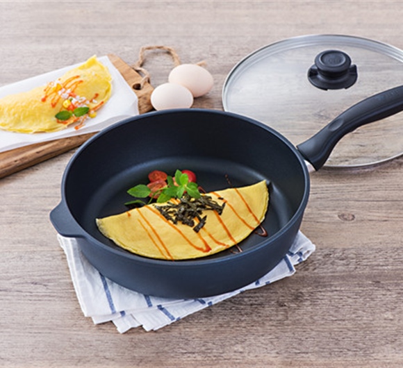 2.鸡蛋打散加入胡椒粉,平底煎锅放少许油,将鸡蛋液倒入锅中,用小火摊成鸡蛋饼。